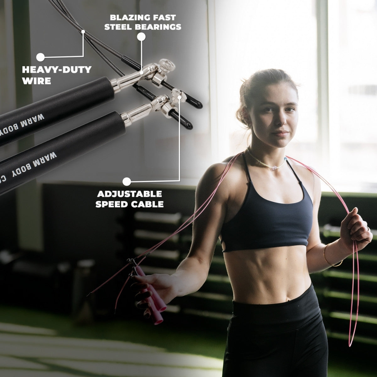 Adjustable Lightweight Jump Rope, woman holding a pink jump rope in her hand – Warm Body Cold Mind